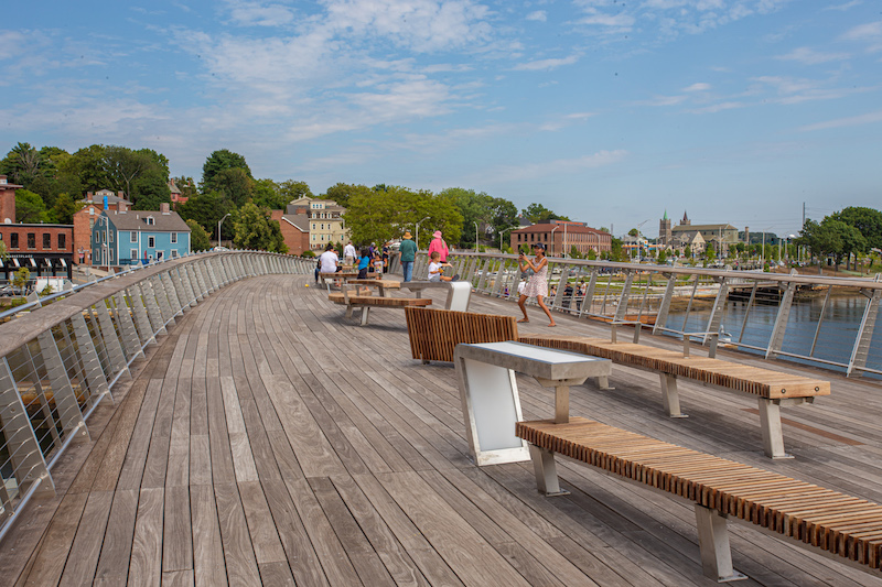 This wooden bridge and public park space connects Providence‘s East Side, which contains the Rhode Island Museum of Design and a mix of cafes, restaurants and shops, to its Innovation & Design District, a former industrial area that’s now an academic hub for Brown University and other Rhode Island higher education institutions. Speaking of academics, it was a RISD student who came up with the idea to use the foundations of a former highway overpass as the bridge’s substructure.