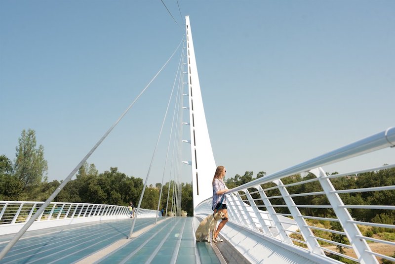 Spanning the Sacramento River in Redding‘s Turtle Bay Exploration Park, this bridge gets its name from having a working sundial that can record shadows for four hours a day. This dazzler also serves as an entrance to the Sacramento River Trail system and links the park’s northern and southern campus entrances.